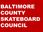The Baltimore County Skateboard Council was created by skateboarders for skateboarders with the purpose of modernizing and expanding Baltimore County's skate park program and increasing the availability of safe, legal places to skate in our local communities.